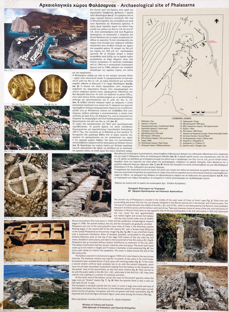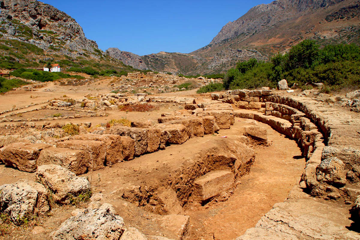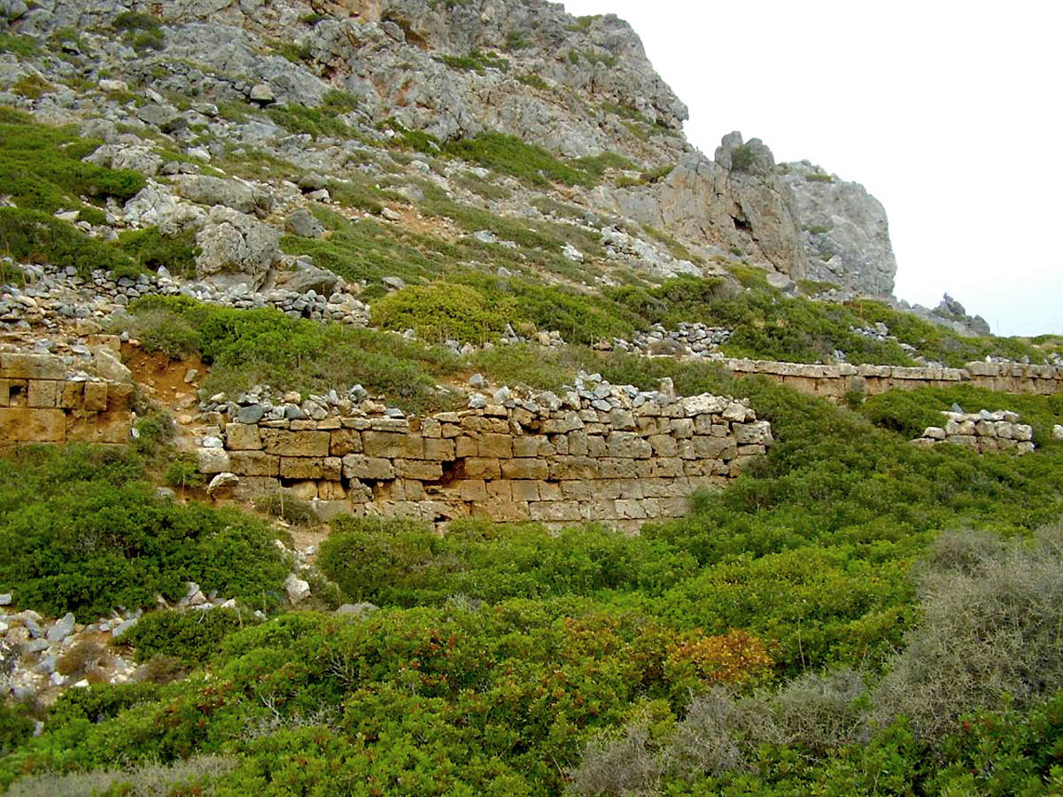 Phalasarna was one of the most powerful naval cities of Crete in the Hellenistic period. It was a fortified citadel with a southward orientation. Ruins of temples, probably consecrated to the goddess Artemis – Diktynna can be found on top of the ridge above the city. 550m of the city walls are still intact, doubled in some places, and date back to the second half of the 4th century B.C..