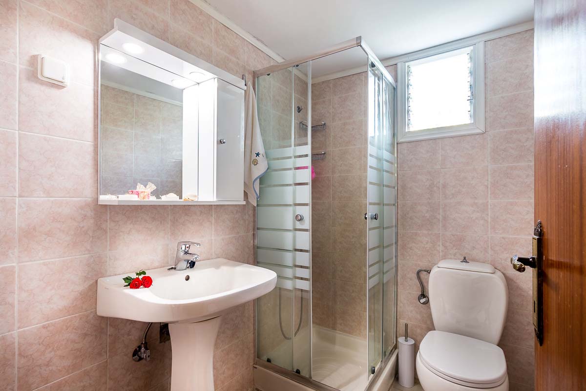 - Bathroom with shower.