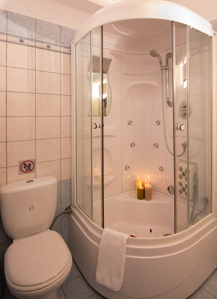 – A bathroom with shower cabin.